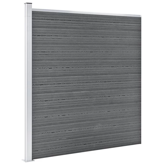Matériau : composite bois-plastique + barres et poteaux d’extrémité en aluminium