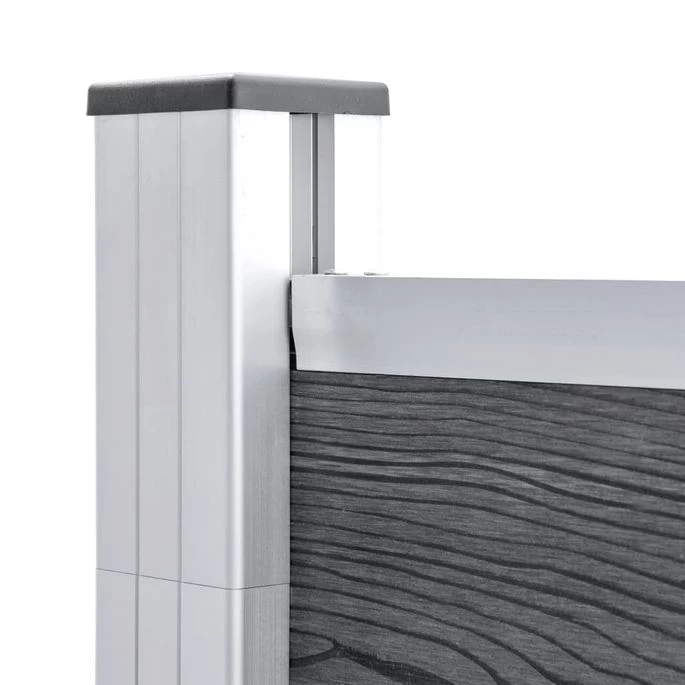 Matériau : composite bois-plastique + barres et poteaux d’extrémité en aluminium